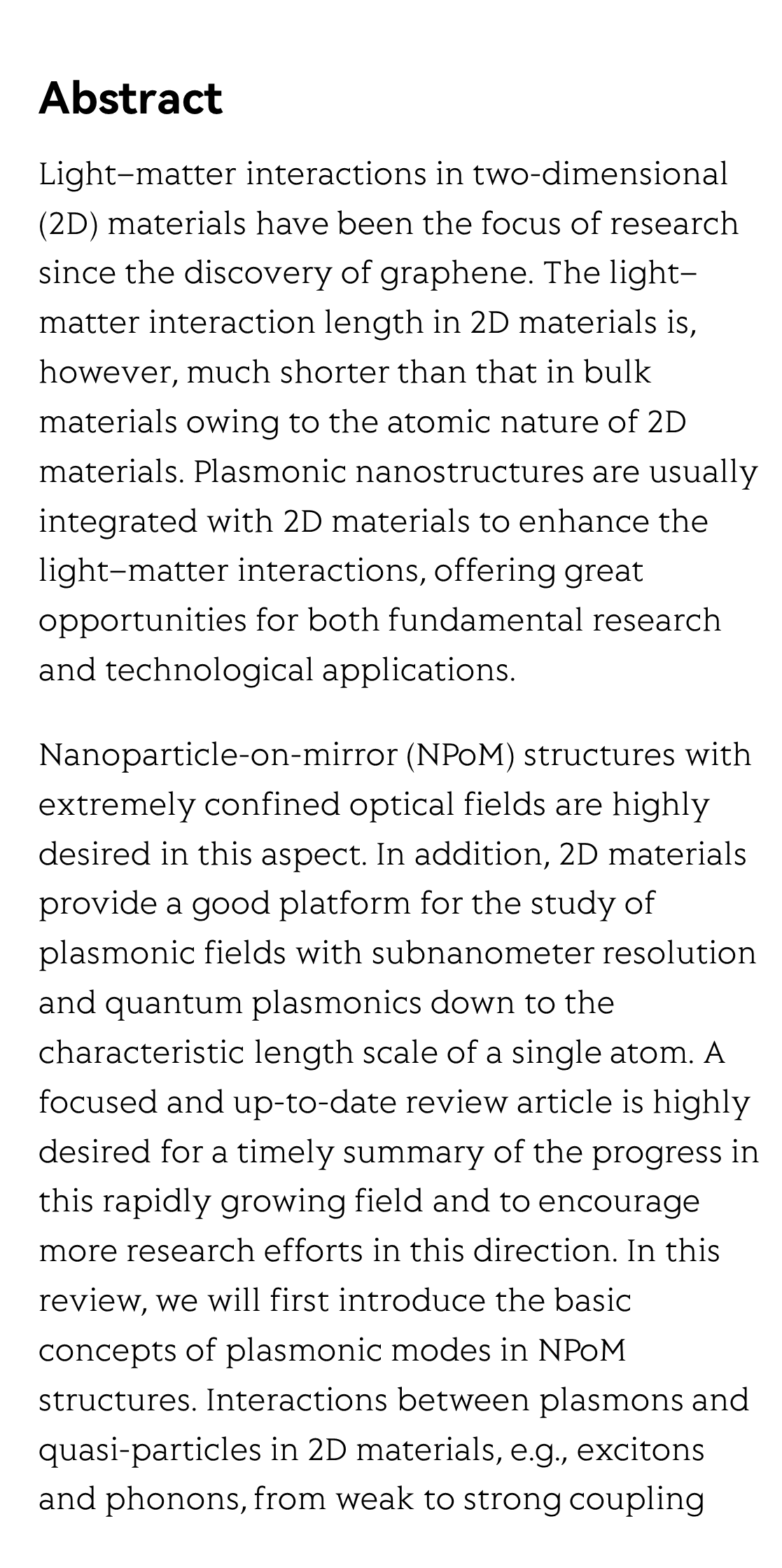 (Peer-Reviewed) Control of light–matter interactions in two-dimensional materials with nanoparticle-on-mirror structures